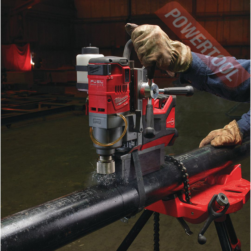 - Компания Milwaukee разработала и построила бесщеточный двигатель POWERSTATE обладающий производительностью сетевой дрели и позволяющий сделать 40 отверстий диаметром 18 мм на одной зарядке аккумулятора. Мощный постоянный магнит позволяет удерживать инструмент на стали толщиной 6,35 мм.