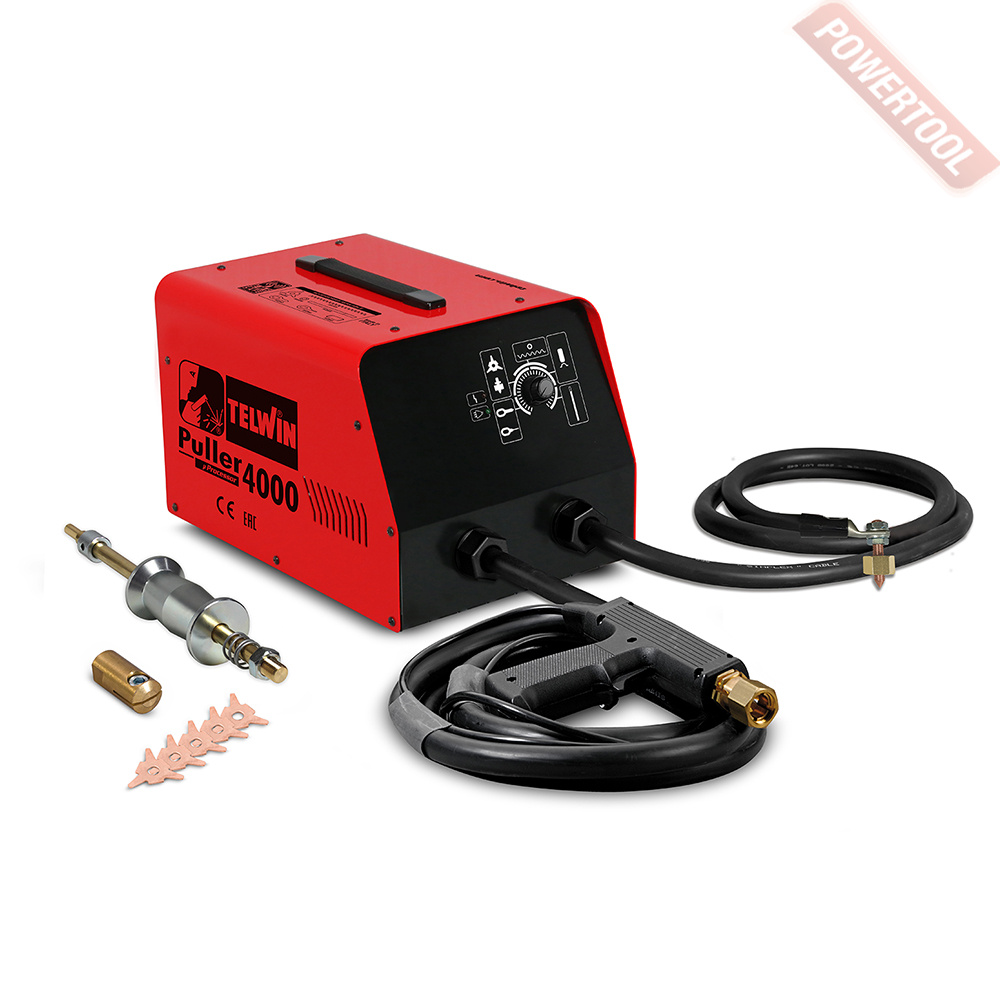 Аппарат контактной точечной сварки TELWIN Puller 4000 - аппарат, управляемый микропроцессором, предназначен для точечной сварки металлических листовых материалов и для приваривания к металлической поверхности различных элементов (звезда для тяги, шлицевая шайба, штифт, гофрированная проволока и т.д.). Технические возможности устройства позволяют работать с листами из железа с низким содержанием углерода и листами из оцинкованного железа. Подходит для кузовного ремонта в авторемонтных мастерских.