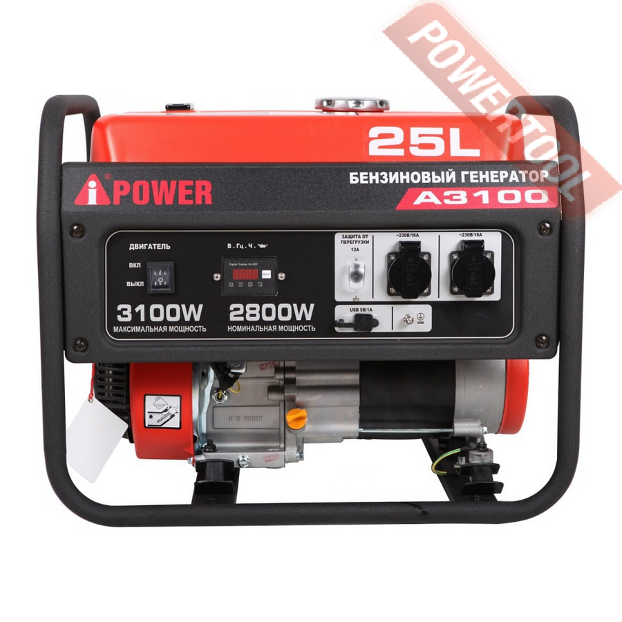 Бензиновый генератор A-iPower A3100 - компактный доступный прибор номинальной мощностью 2,8 кВт. Основное назначение этой модели заключается в энергоснабжении нетребовательных потребителей на небольшой стройплощадке, в мастерской или частном домохозяйстве.