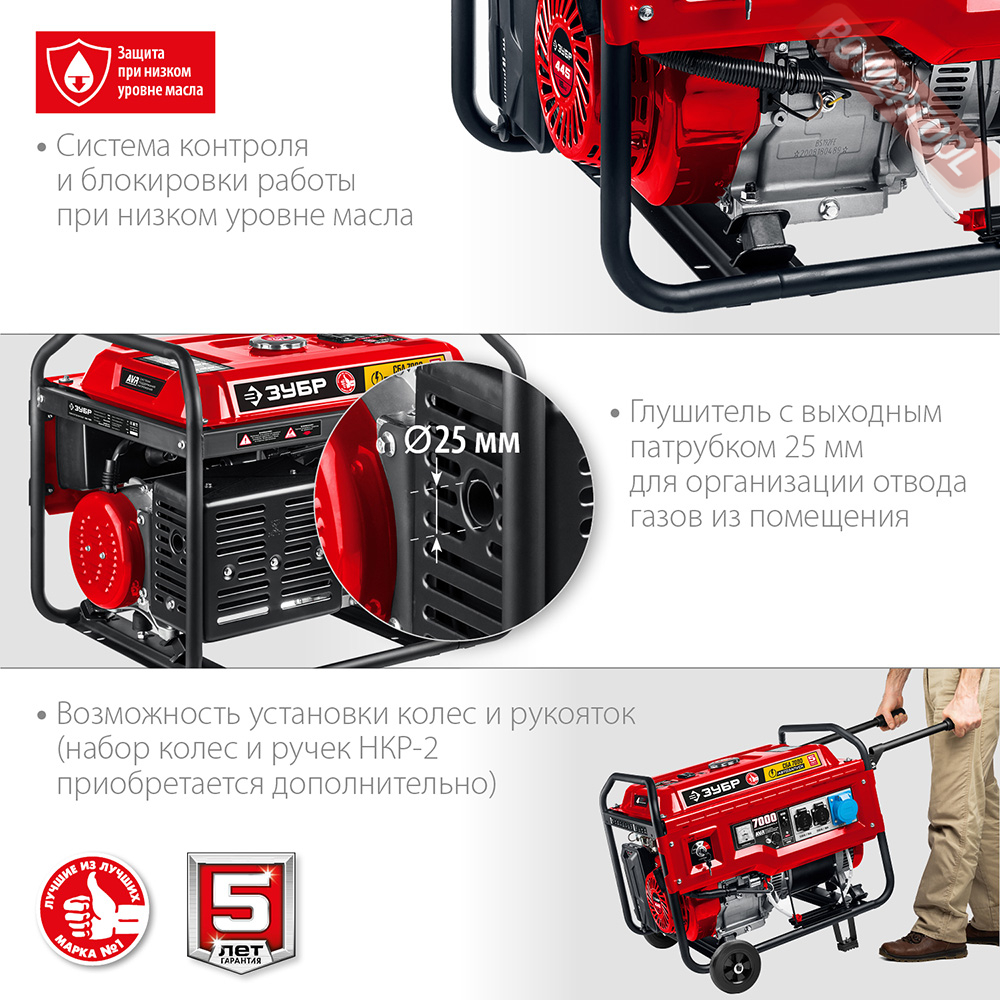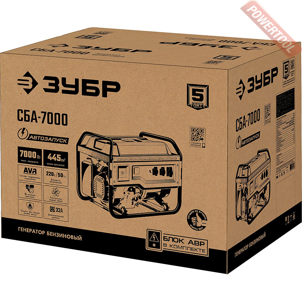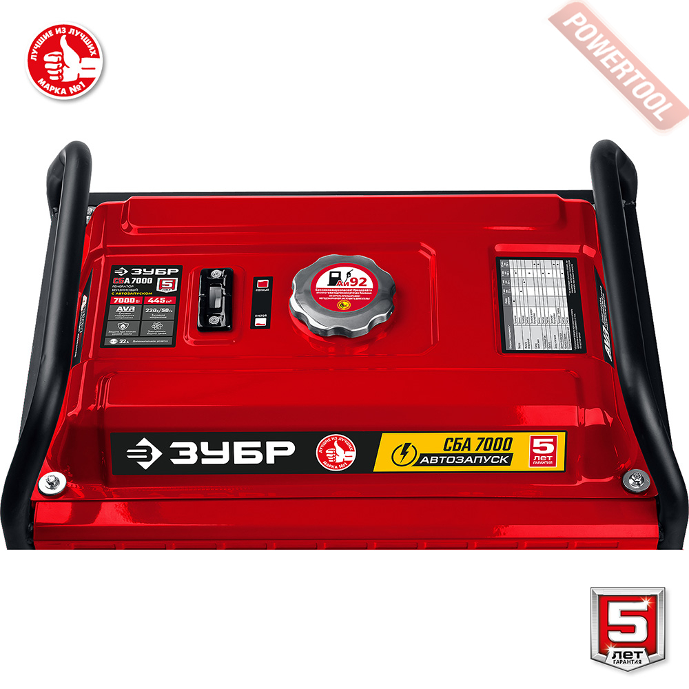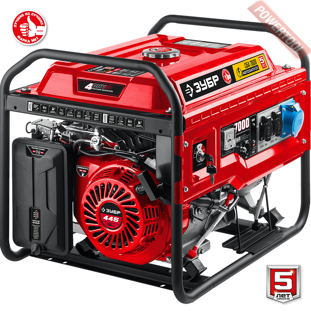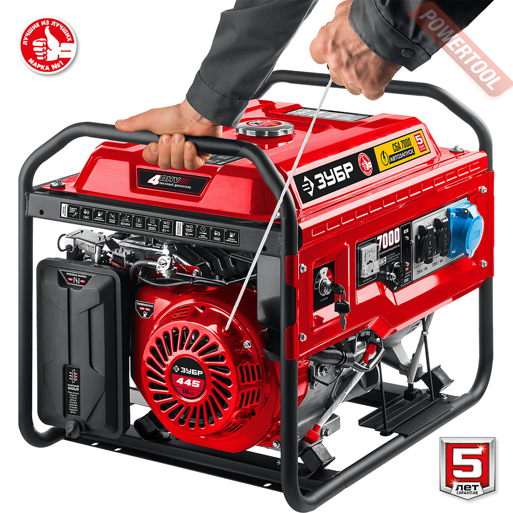 - 1. Бензиновый генератор ЗУБР СБА-7000.