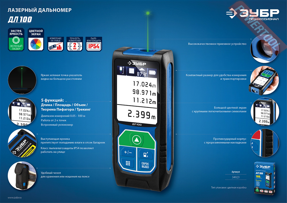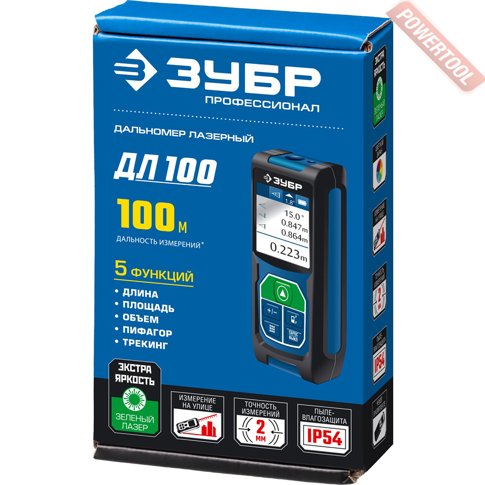 - 1. Дальномер лазерный ЗУБР ДЛ 100 Профессионал.