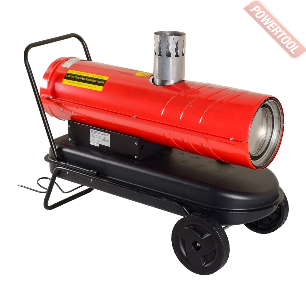 Дизельная тепловая пушка непрямого нагрева РЕСАНТА ТДПН-30000 - жидкотопливный нагреватель воздуха непрямого нагрева, характеризуются высокой эффективностью при обогреве больших помещений, обеспечивая чистый и теплый воздух. Применяется для обогрева закрытых помещений со средним уровнем вентиляции: магазинов, палаток, при проведении выставочных и развлекательных мероприятий. Тепловая пушка оптимальна для работы при строительстве, ремонте и эксплуатации жилых зданий и торговых площадей с вентиляцией. Широко применяется на строительных площадках для прогрева бетона при отрицательных температурах воздуха. Само устройство можно запустить и на улице. При внутреннем монтаже, обязательна подача свежего воздуха, так как процесс горения активно расходует кислород. Также внутренний монтаж в обязательном порядке предусматривает наличие дымоходной трубы на выходном газовом патрубке.