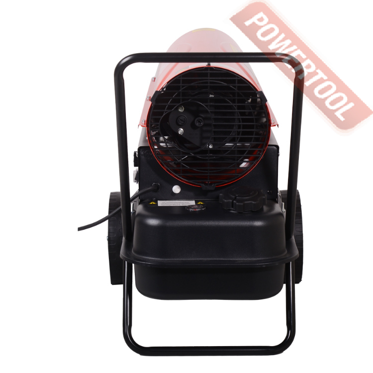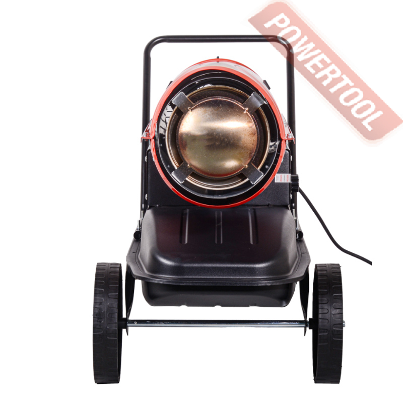 - Транспортировка. По своим характеристикам имеет компактные габариты и вес, что делает ее эргономичной и удобной для перевозки. Колеса и удобная рукоятка позволяют с легкостью перемещать тепловую пушку по объекту.