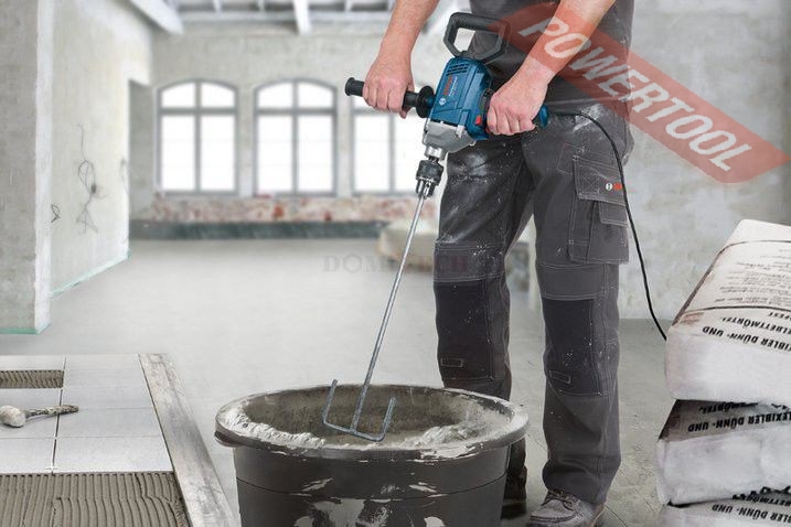 - Благодаря 16 мм ключевому патрону и высокому крутящему моменту, дрель способна проделывать отверстия большого диаметра и перемешивать большие объемы густых смесей.