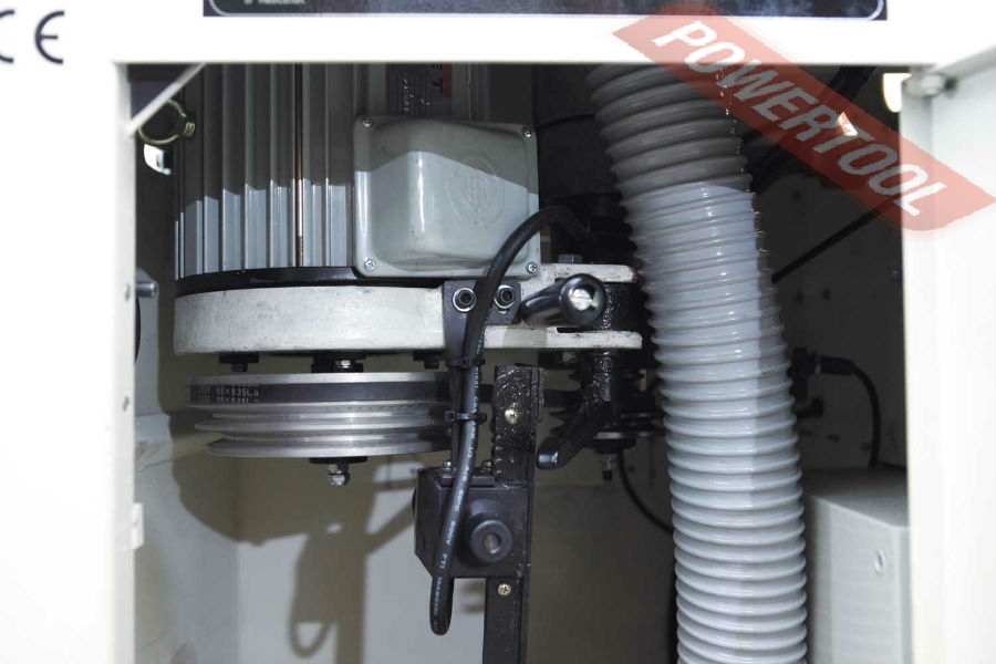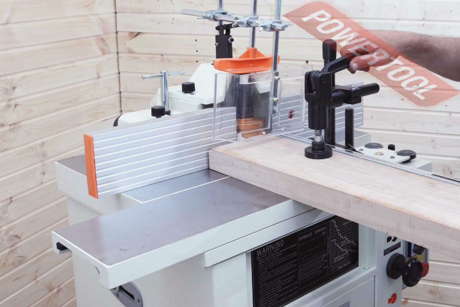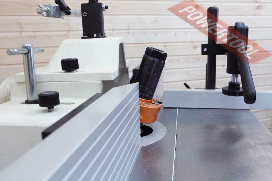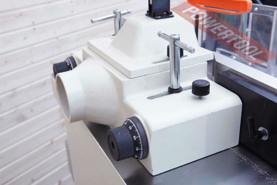 Возможности предусмотренных регулировок и настроек достаточны для использования станка с широким диапазоном режущих инструментов и для выполнения самых разных фрезерных работ. Так, штатный 30-миллиметровый шпиндель выполнен легкосъемным, его можно заменить на другой или на цанговый зажим для концевых фрез. Фрезерный упор можно передвигать по столу целиком, предварительно ослабив крепления, или при помощи вращающихся рукояток точно перемещать отдельно друг от друга переднюю и заднюю части. Эти рукоятки имеют миллиметровую разметку – лимб. Накладки упора регулируются и в продольном направлении. За наклон шпинделя и его вертикальное перемещение отвечают крупные маховики с рукоятками для более удобного вращения. Все настройки выполняются без использования вспомогательного инструмента. Без него же и переставляют ремень для выбора одной из трех скоростей вращения.