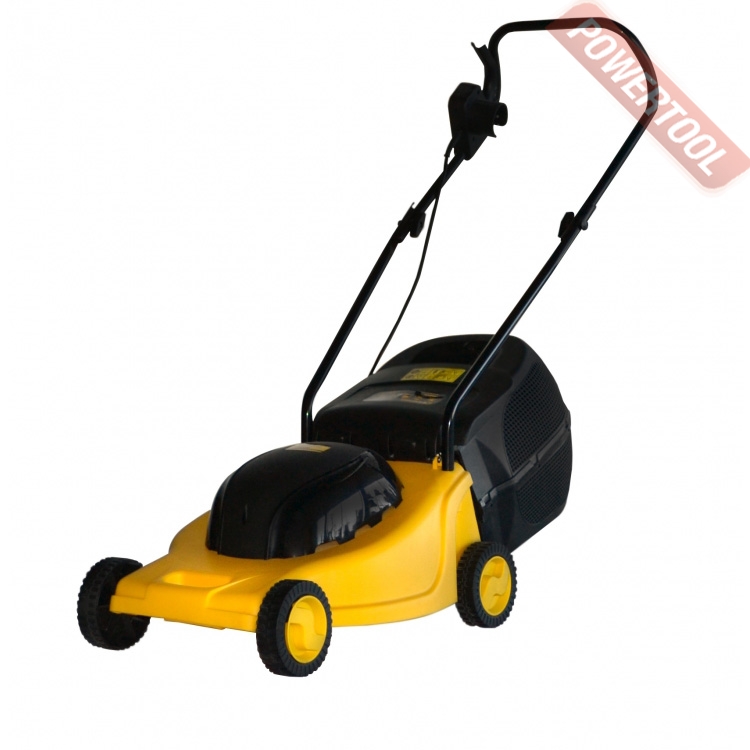 Газонокосилка электрическая несамоходная, 1400 Вт, корпус ударопрочный пластик PP, ширина скашивания 38 см, регулировка высоты скашивания для каждой оси колеса 3 позиции от 25-55 мм, сбор травы в жесткий травосборник 45 л, колеса на втулках, вес 13,1 кг.