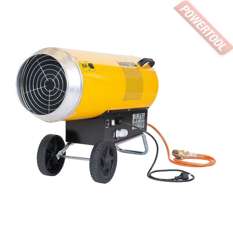 Газовая тепловая пушка MASTER BLP 103 E - переносной обогреватель воздуха, работающий на газе, он быстро и эффективно обогревает большие площади. Это оборудование не требует больших затрат и капиталовложений. Газовые нагреватели воздуха широко применяются в помещениях с хорошей вентиляцией: на строительных площадках, заводах и в складских помещениях. Характерные особенности это полное использование топлива, а также обмен тепла благодаря непосредственному смешиванию входящего воздуха с продуктами сгорания. Что касается топлива, то для этих целей подходит баллон с пропаном или бутаном. Соответствующий шланг присоединяется через редуктор к вентилю баллона. Необходимо соблюдать все правила работы с газовыми баллонами. Также необходимо помнить, что процесс горения активно поглощает кислород, который жизненно необходим человеку. Поэтому помещения, где устанавливаются тепловые пушки, должны постоянно проветриваться и иметь хорошую вентиляцию. Для правильной работы обогреватель требует соответствующего количества свежего воздуха. Поэтому он предназначен для использования вне помещений или в помещениях с хорошей вентиляцией, где обеспечено соответствующее количество воздуха. Соответствующую вентиляцию можно обеспечить, приспосабливая обогревательную мощность прибора к площади помещения в соответствии со следующей пропорцией: 1 куб.м на каждые 100 Вт мощности. Ни в коем случае не рекомендуется, чтобы помещение было меньше, чем 100 куб.м. Соответствующий обмен воздуха может быть обеспечен благодаря вентиляционному отверстию, соответствующему следующим требованиям: величина 25 кв.см на 1 кВт обогревательной (минимум 250 кв.см) мощности, размещение точно между верхней и нижней частью помещения.