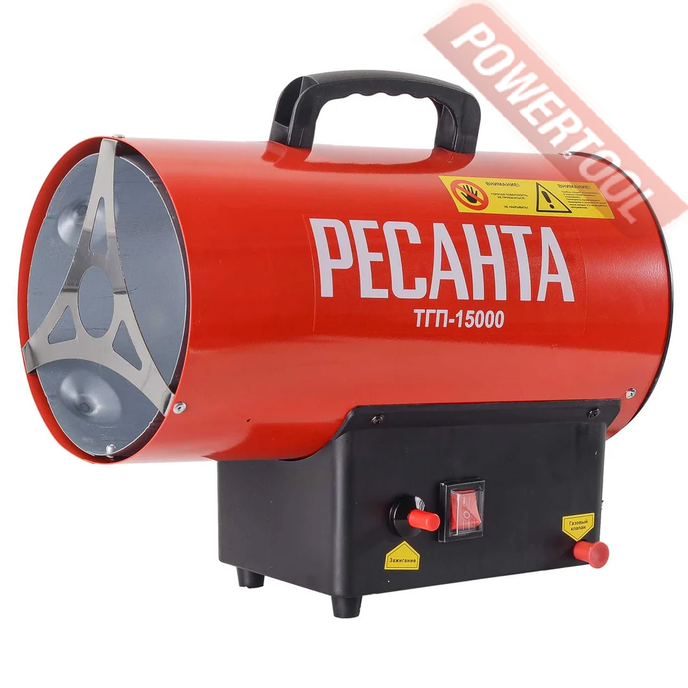 Тепловая газовая пушка, топливо: сжиженный газ (пропан/бутан), напряжение сети 110/220 В, тепловая мощность 10-16 кВт, расход воздуха 300 куб.м/ч, расход сжиженного газа 1,16 кг/ч, потребляемая мощность 0,005 кВт, термостат перегрева, защита от перегрева, ручной поджиг, может работать от аккумулятора, габариты 550x230x300 мм, вес 4 кг.