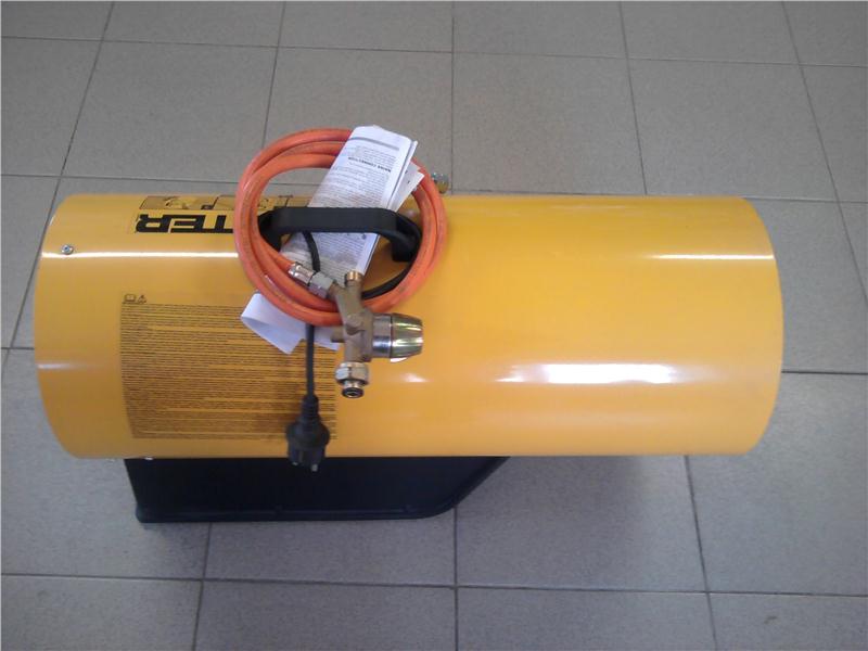 Газовая тепловая пушка MASTER BLP 73 M - переносной обогреватель воздуха, работающий на газе, он быстро и эффективно обогревает большие площади. Это оборудование не требует больших затрат и капиталовложений. Газовые нагреватели воздуха широко применяются в помещениях с хорошей вентиляцией: на строительных площадках, заводах и в складских помещениях. Характерные особенности это полное использование топлива, а также обмен тепла благодаря непосредственному смешиванию входящего воздуха с продуктами сгорания. Что касается топлива, то для этих целей подходит баллон с пропаном или бутаном. Соответствующий шланг присоединяется через редуктор к вентилю баллона. Необходимо соблюдать все правила работы с газовыми баллонами. Также необходимо помнить, что процесс горения активно поглощает кислород, который жизненно необходим человеку. Поэтому помещения, где устанавливаются тепловые пушки, должны постоянно проветриваться и иметь хорошую вентиляцию. Для правильной работы обогреватель требует соответствующего количества свежего воздуха. Поэтому он предназначен для использования вне помещений или в помещениях с хорошей вентиляцией, где обеспечено соответствующее количество воздуха. Соответствующую вентиляцию можно обеспечить, приспосабливая обогревательную мощность прибора к площади помещения в соответствии со следующей пропорцией: 1 куб.м на каждые 100 Вт мощности. Ни в коем случае не рекомендуется, чтобы помещение было меньше, чем 100 куб.м. Соответствующий обмен воздуха может быть обеспечен благодаря вентиляционному отверстию, соответствующему следующим требованиям: величина 25 кв.см на 1 кВт обогревательной (минимум 250 кв.см) мощности, размещение точно между верхней и нижней частью помещения.