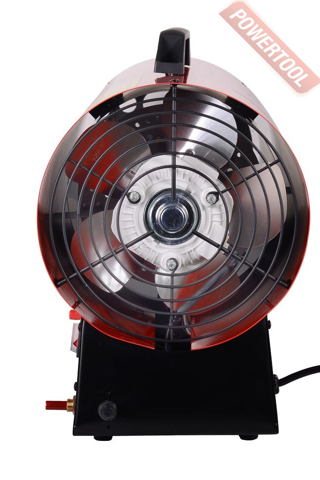 - Нагнетательный осевой вентилятор. Он создает воздушный поток, который выходит через рабочее сопло уже нагретый в теплообменнике прямого типа. Работает от сети 220 В потребляя немного энергии. Электродвигатель вентилятора имеет защиту от перегрева и скачков напряжения сети.