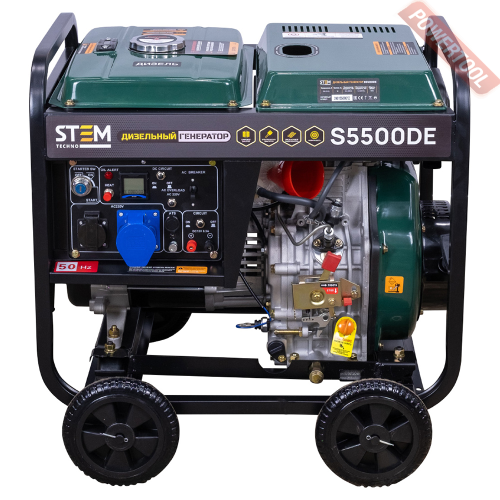 Генератор дизельный STEM TECHNO S5500DE - применяются в качестве аварийного или автономного источника электроэнергии для питания бытовых электроприборов, электроинструмента, небольших станков. Оптимальное соотношение мощности двигателя и электрогенератора обеспечивает стабильную работу на номинальной мощности.