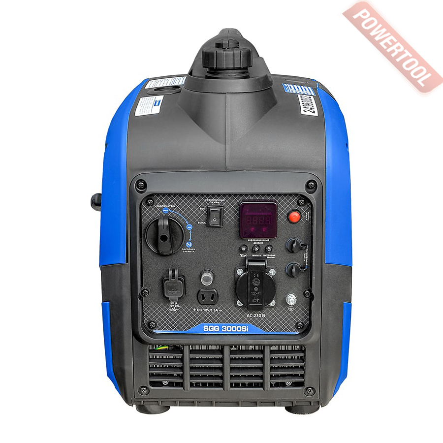 Генератор инверторный ТСС TSS SGG 3000Si в шумопоглащающем кожухе, предназначен для подключения к нему потребителей тока общей максимальной мощностью до 3,5 кВт. Переносной компактный инверторный генератор предназначен для питания электроприборов, на загородном участке, в походе, на рыбалке. Благодаря использованию В этой модели инверторного преобразователя, на выходе получается стабильный ток, без каких-либо скачков, генератор способен регулировать работу двигателя в зависимости от нагрузки: к примеру, если нагрузка составляет половину от выходной мощности, то и мощность двигателя снижается вдвое; это дает значительную экономию топлива. Инверторные модели получаются более легкими и компактными, чем традиционные генераторы.