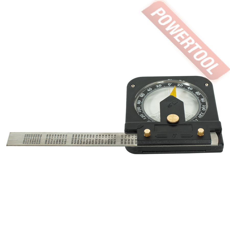 Прозрачный элемент подвижной рабочей части размещен в пластиковом корпусе, грани которого сходятся под прямым углом, позволяя использовать устройство в качестве угольника. Приблизительные/оценочные измерения выполняются по шкале с обратной стороны корпуса, цена деления которой составляет 2 градуса. На лицевой части нанесена круговая градусная разметка с делениями через 1 градус. Дополнительная нониусная шкала дает возможность определять величину вертикальных углов с разрешением до 0,1 градуса в пределах до 120 градусов. Сдвоенные кольцевые деления исключают ошибку при визуальном считывании показаний.