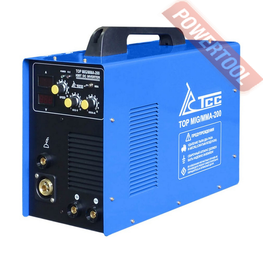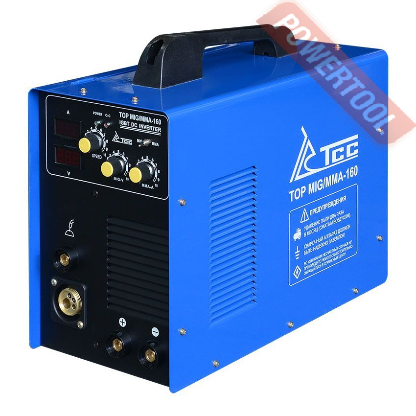 - Цифровой дисплей позволяет точно установить параметры сварки и скорость подачи проволоки.