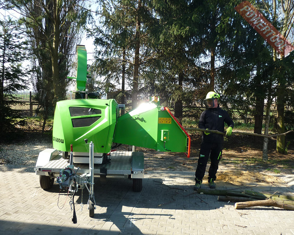 Коммунальный измельчитель веток на шасси LASKI LS 160 DWBS – новая компактная дробилка древесины для максимального диаметра вкладываемого материала 160 мм. Она предназначена для измельчения ветвей, стволов, кустов, древесной коры и других надземных частей растений, или для производства щепки. Поворотная верхняя часть дробилки позволяет прямой доступ к питательному лотку из любой стороны. Дробилка оснащена двумя гидравлическими приводными валиками – питателями с автоматической системой второго поколения против перегрузки водоохлаждаемого двигателя внутреннего сжигания Ломбардини. Инерционный тормоз позволяет буксировку даже за обыкновенной легковой машиной.