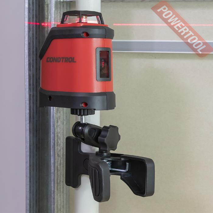 Крепление для лазерного нивелира CONDTROL Krab можно закрепить практически на любом предмете с обхватом в пределах 50 мм. Надежность установки прибора обеспечивает клипса с основанием ромбовидной формы. По сравнению с аналогами, оснащенными плоскими клипсами, универсальное крепление отличается более мощным зажимом (захватом). Благодаря усиленной пружине и противоскользящим элементам аксессуар выдерживает вес до 900 г. Вращающийся шарнир позволяет устанавливать прибор под любым углом, что особенно важно для осуществления разметки под наклоном. В некоторых случаях может даже заменить штатив. Этот аксессуар можно установить на трубе, бруске или профиле, предварительно определив необходимую для горизонтальной разметки высоту.