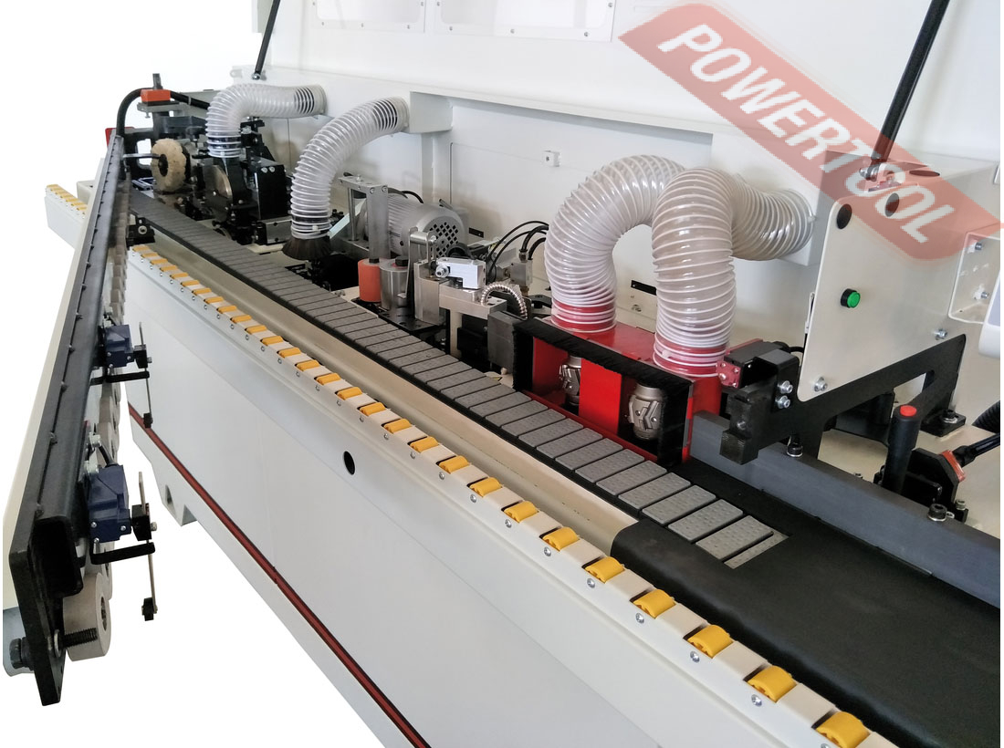 Кромкооблицовочный станок JET JEB-45MPMU - современный, производительный и удобный в эксплуатации станок для облицовки кромок панелей из древесины и ее производных. В работе может быть использован рулонный материал, а также заготовки практически любых форматов, больше минимально-допустимых (90х90 мм), в том числе имеющие дефекты поверхностей, идущих под наклеивание. Подача автоматическая при помощи парных обрезиненных прижимных роликов и многозвенной транспортерной ленты, сделанной по принципу гусеницы. Модель оборудована узлом предварительного фрезерования, производящим «прифуговку» материала. Эта дополнительная ступень обработки позволяет компенсировать увеличение ширины заготовки на толщину кромки и обеспечивает безупречное качество наклеивания даже при наличии дефектов поверхности, вызванных обработкой или хранением. Все технологические процессы происходят внутри станка автоматически, что при правильной настройке и отладке позволяет получать максимальное качество изделий без брака, вызванного «человеческим фактором». Управление «на уровне пользователя» сравнительно простое: отдельными кнопками включаются отдельные узлы, а индикаторы сообщают о нормальной работе или об ошибке. Для переналадки в зависимости от толщины панелей и кромки тоже не требуется глубоких знаний – достаточно «обмерить» штангенциркулем заготовки и повернуть регулировочные рукоятки в соответствии с показаниями цифровых индикаторов на них. Станок требует подключения к трехфазной сети 380-400В, к системе аспирации (размер патрубков 100 мм) и к пневматической линии или компрессору с достаточной производительностью рабочее давление 6-8 бар соответствует общепринятому стандарту.