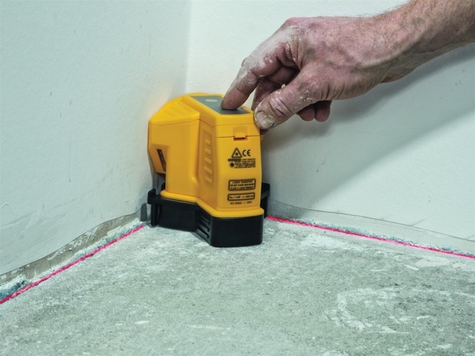 - Построение лазерных линий. Благодаря оптическому устройству для напольных покрытий STABILA две прямые лазерные линии соединяются и проецируются под точным углом 90 градусов на поверхность пола.