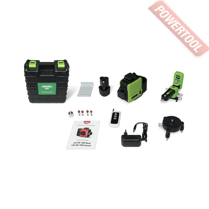 - 1. Лазерный уровень построитель плоскостей AMO LN 3D-360 Green.