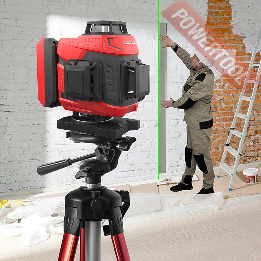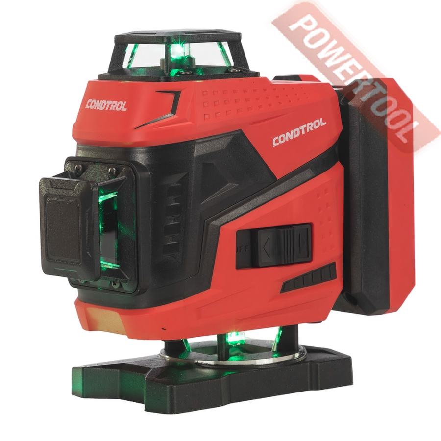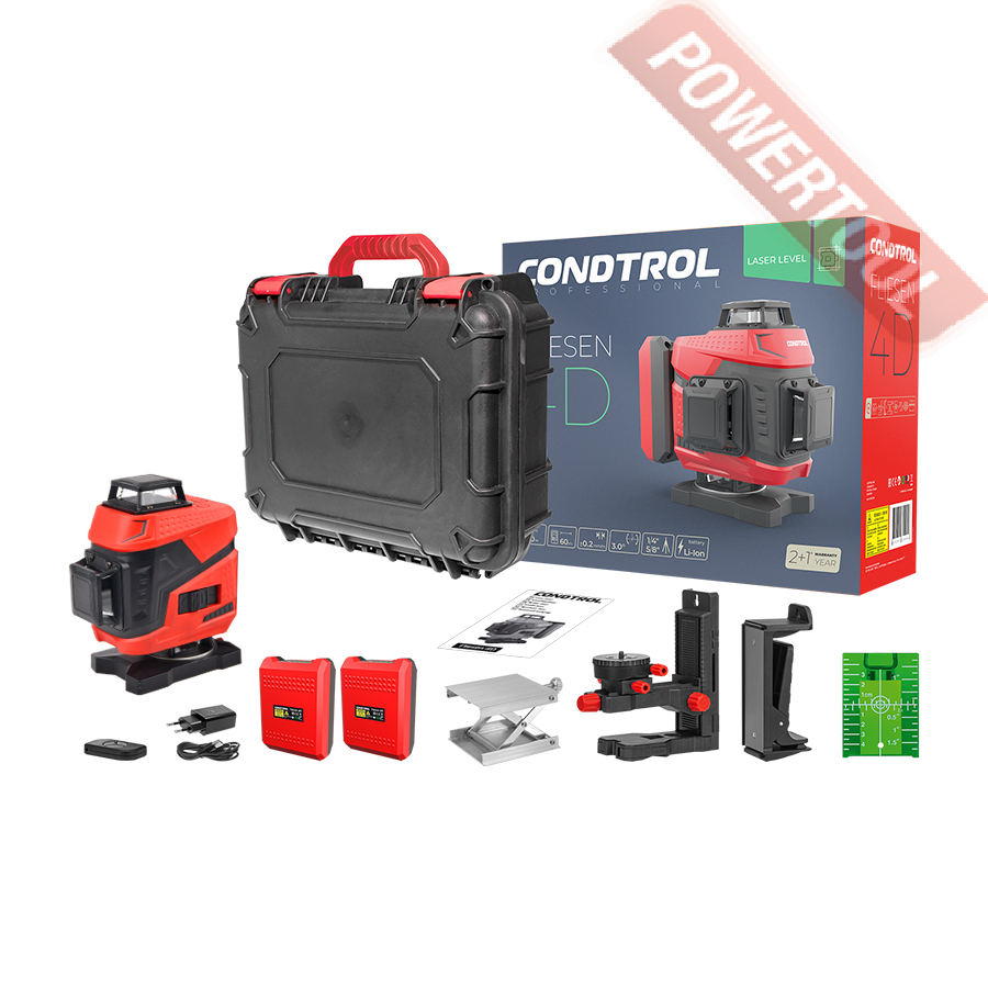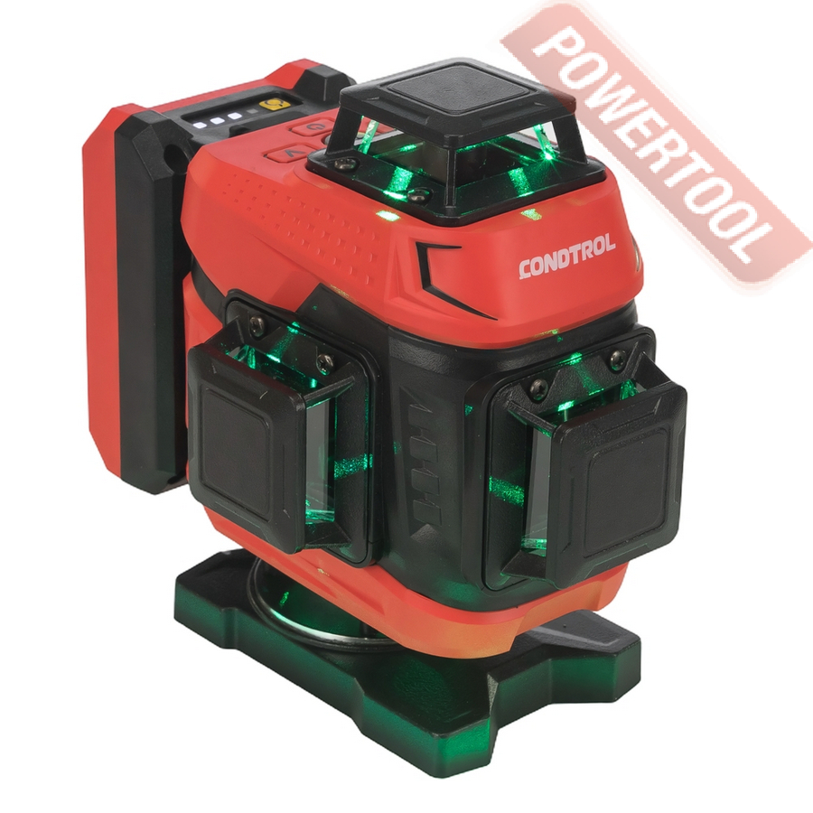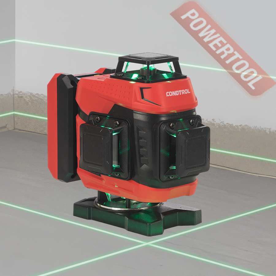 Лазерный уровень построитель плоскостей CONDTROL Fliesen 4D new — многофункциональный, надёжный и удобный инструмент, предназначенный для выполнения широкого спектра задач, требующих высокой точности разметки горизонтальных и вертикальных плоскостей. Он незаменим при выравнивании полов, укладке плитки, а также в отделочных, монтажных и строительных работах — как в помещении, так и на открытых строительных площадках.