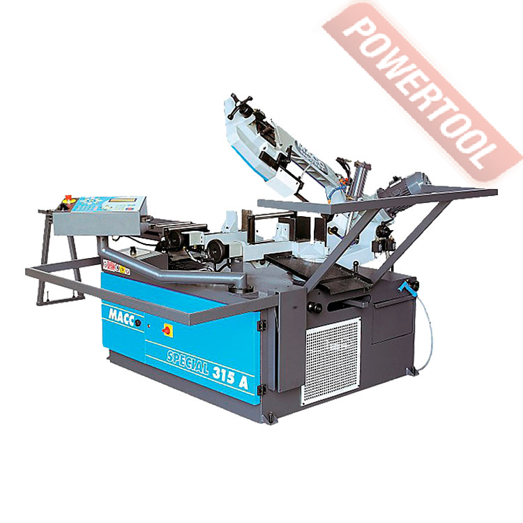 Ленточная пила по металлу MACC Special 315 A предназначена для резания заготовок из стали, включая инструментальную и нержавеющую сталь, цветных и легких металлов. Возможно резание под углом от 0 до 60 градусов. Автоматическое опускание головы. Вращение двигателем с двумя скоростями. Набор сервисных инструментов. Система охлаждения полотна. Макс. ход подающего механизма – 500 мм. Механический конвейр для поддержки заготовки. Пневмоприжимы профиля с дожимом. Толщина стали которую можно резать - 1,2 мм.