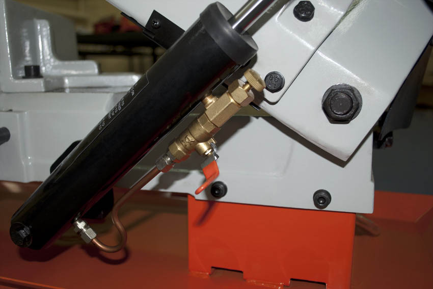 - Гидравлическая система подачи обеспечивает автоматическое плавное опускание консоли пилы. Регулирует скорость опускания пильной рамы, что в свою очередь позволяет максимально точно регулировать режим работы с заготовкой для достижения наилучшего результата. На станках с гидроразгрузкой, процесс резки (запуск пилы - опускание рамы - остановка пилы) происходит в автоматическом режиме благодаря гидравлической системе.