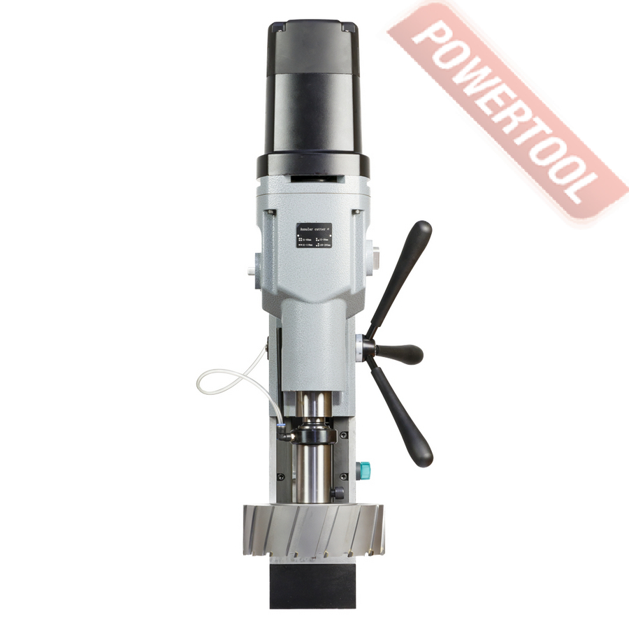Магнитный сверлильный станок, 3600 Вт, 220 В, max диаметр корончатого сверла 200 мм, max диаметр спирального сверла 50 мм, конус шпинделя КМ 4, крепление корончатого сверла на Weldon 32, ход шпинделя 255 мм, max нарезаемая резьба M48, частота вращения шпинделя 40-80/60-125/145-300/230-470 об/мин, 4 скорости, прижимная сила 36088 Н, размер магнитного основания ДхШ 350х125 мм, габариты ДхШхВ 515х265х905 мм, вес 58,5 кг, реверс, плавная регулировка оборотов, индикация числа оборотов, встроенная система подачи СОЖ, в комплекте патрон КМ 4/Weldon 32, рукоятки 3 шт, страховочный ремень, набор шестигранных ключей 2.5, 5, 8 мм, клин, кейс.