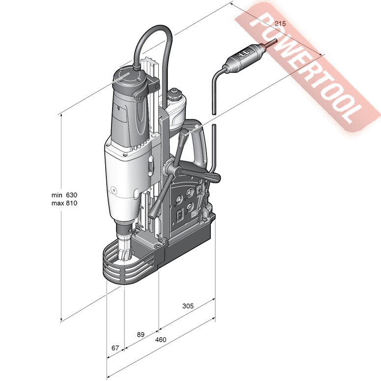 Магнитный сверлильный станок, 1700 Вт, 220 В, max диаметр корончатого сверла 110 мм, max диаметр спирального сверла 40 мм, конус шпинделя КМ 4, крепление корончатого сверла на Weldon 32, ход шпинделя 400 мм, max нарезаемая резьба M36, частота вращения шпинделя 60-120/90-170/150-300/230-430 об/мин, 4 скорости, прижимная сила 23000 Н, размер магнитного основания ДхШ 240х120 мм, габариты ДхШхВ 460х215х810 мм, вес 39 кг, реверс, регулировка оборотов, система подачи СОЖ, в комплекте патрон КМ 4/Weldon 32, емкость для СОЖ, ремень для крепления с трещоткой, крючок для стружки, центрирующий штифт 6,35х125 мм, центрирующий штифт 7,98х184 мм, устройство защиты от прикосновения, клин, 2 ключа с внутренним шестигранником на 5 и 6 мм, добавочная рукоятка, кейс.