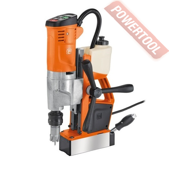Магнитный сверлильный станок FEIN KBU 35 PQW - односкоростной магнитный станок для сверления корончатым сверлом по металлу диаметром до 35 мм и спиральным до 16 мм. Хвостовик 3/4 Weldon (19 мм). Максимальный диаметр зенковки 31 мм. Нарезание резьбы до М14. Величина хода каретки 135 мм (полный диапазон хода 260 мм). Встроенный бачок для СОЖ. Установка рукояти подачи сверла с любой стороны. Компактный и легкий станок. Оптимальное соотношение цены и качества.