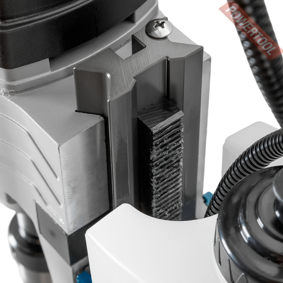 • Направляющие типа «двойной ласточкин хвост» позволяют перемещать и закреплять привод в любом положении для работы с длинными спиральными сверлами или сверления ниже уровня основания станка.