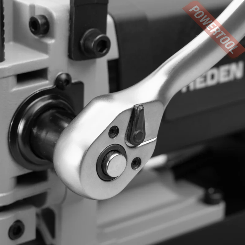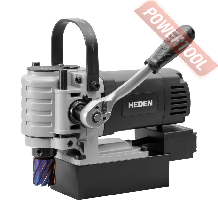 Магнитный сверлильный станок HEDEN DMK-40 подходит для сверления заготовок в небольших производственных помещениях.