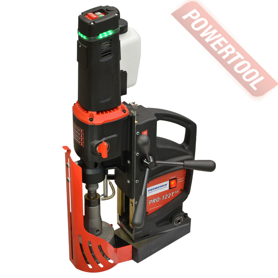 Магнитный сверлильный станок PROMOTECH PRO-122 T SB предназначенный для выполнения отверстий корончатым сверлом диаметром 120 мм и спиральным сверлом диаметром до 31,75 мм. Оснащена функцией реверса, что позволяет нарезать резьбу до М30. Система светодиодных индикаторов позволяет контролировать состояние машины во время работы, что повышает безопасность и продлевает срок службы станка и используемого инструмента.