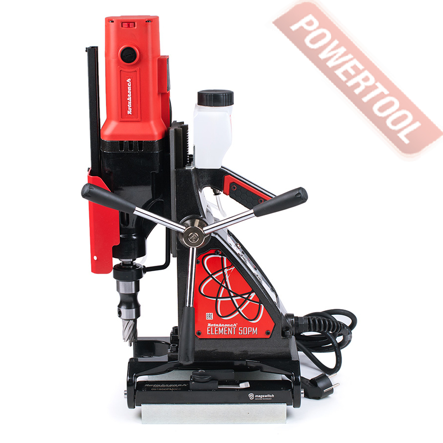 Магнитный сверлильный станок ROTABROACH Element 50 PM для сверления труб, с основанием на постоянных магнитах.
