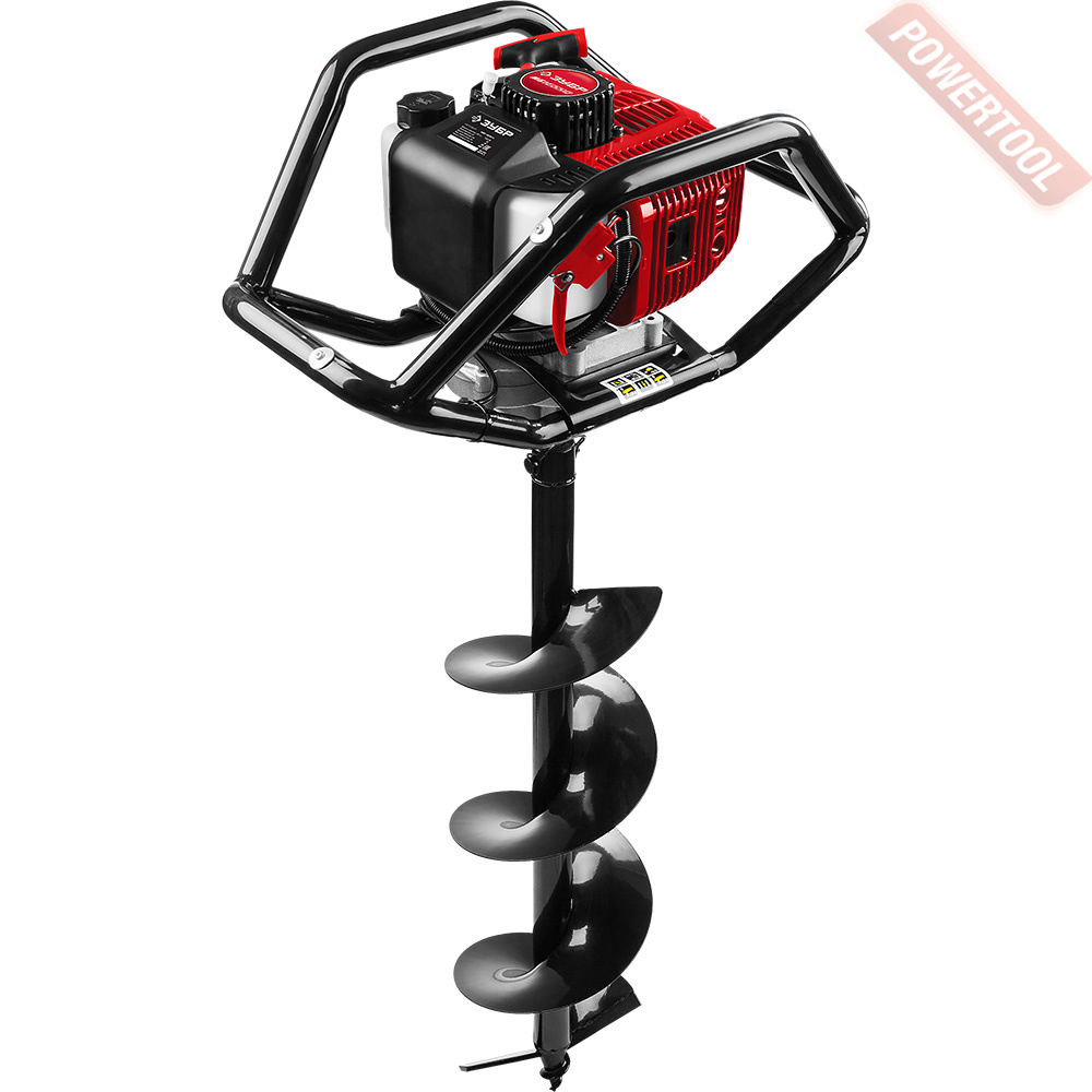 - Рабочей частью агрегата является винтообразный бур или шнек, который приводится во вращение с помощью двухтактного бензинового двигателя.