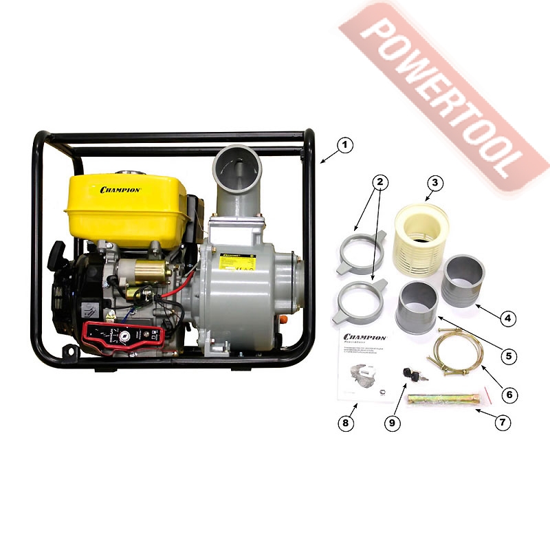 - 1. Мотопомпа бензиновая для чистой воды CHAMPION GP100E.