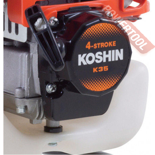 - Четырехтактный бензиновый двигатель Koshin K35. Данная модель имеет бензиновый двигатель объемом 36 куб.см и мощностью 1,1 л.с., обеспечивающий высокую производительность установки. Двигатель является одноцилиндровым 4-х тактным с верхним расположением клапанов (OHV), имеет горизонтальный вал и воздушное охлаждение с системой принудительной циркуляцией. Прост в эксплуатации и обслуживании, обладает высокой надежностью, гарантирует длительную бесперебойную работу.