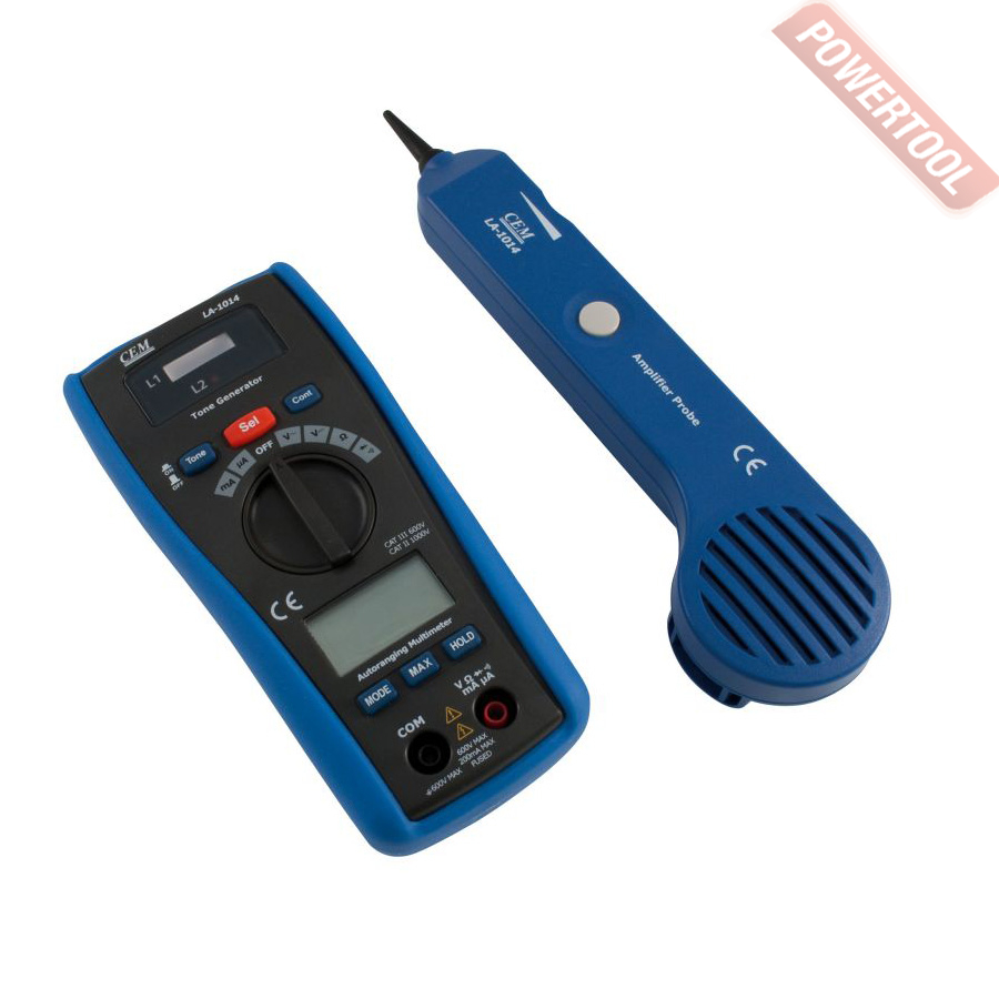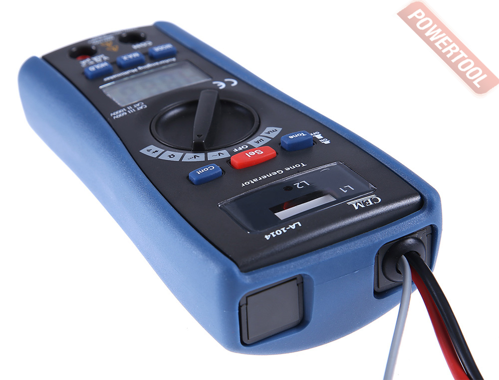 Мультиметр цифровой и детектор проводки CEM LA-1014 представляет собой прибор, совмещающий два инструмента в одном – кабель тестер и мультиметр. Детектор проводки LA-1014 может применяться для проверки электрического контакта между двумя точками, для точного определения точки обрыва поврежденного кабеля или для нахождения в стене кабеля или телефонной линии, компьютерных или обесточенных силовых сетей.