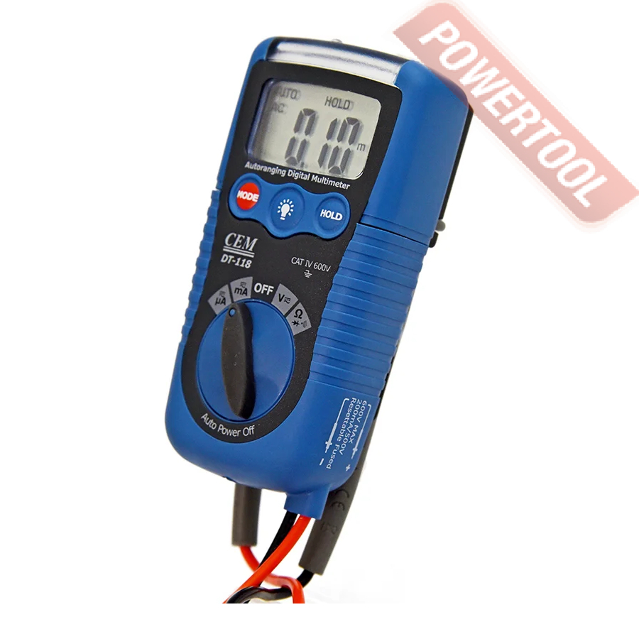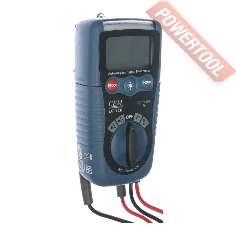 Мультиметр цифровой автоматический CEM DT-118 - это комбинированный электроизмерительный прибор, который используется для простого и удобного измерений постоянного и переменного напряжения, силы тока, сопротивления, емкости, частоты и рабочего цикла в электрических цепях. Используя в работе мультиметр цифровой DT-118, то вы сможете быстро и максимально точно определить всем необходимые параметры без привлечения дополнительного оборудования.