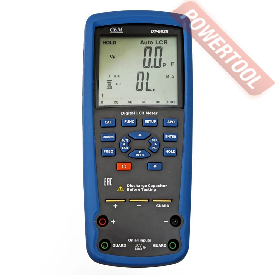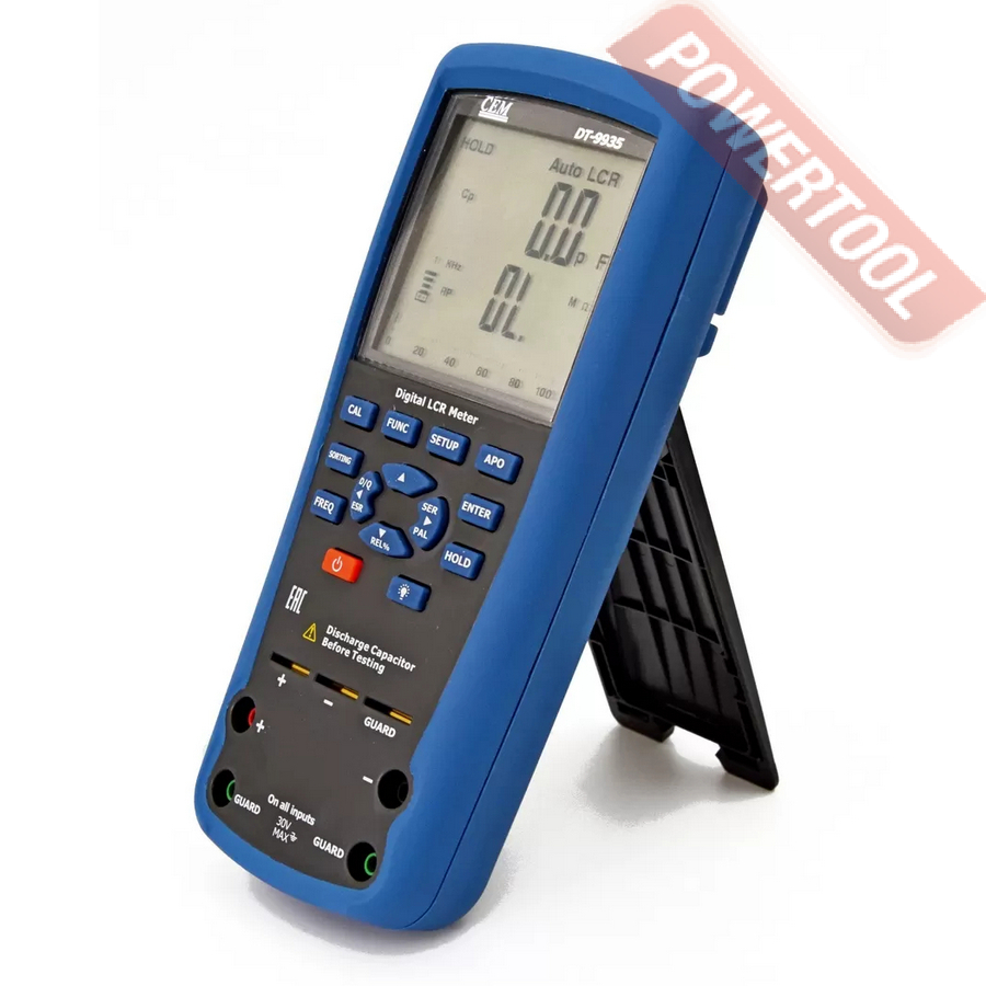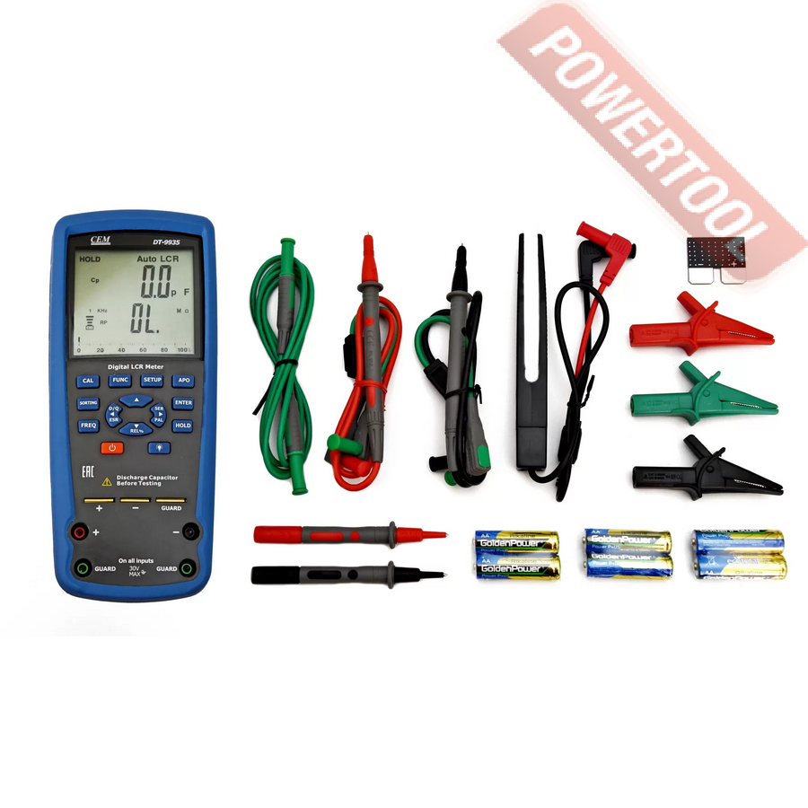Мультиметр цифровой и LCR-метр CEM DT-9935 — профессиональный цифровой прибор для измерения комплексных параметров электрической цепи с переменной частотой. В список основных величин, которые можно определить с его помощью, входят как основные параметры — индуктивность, ёмкость, сопротивление — так и коэффициент затухания, тангенс угла диэлектрических потерь и другие параметры.