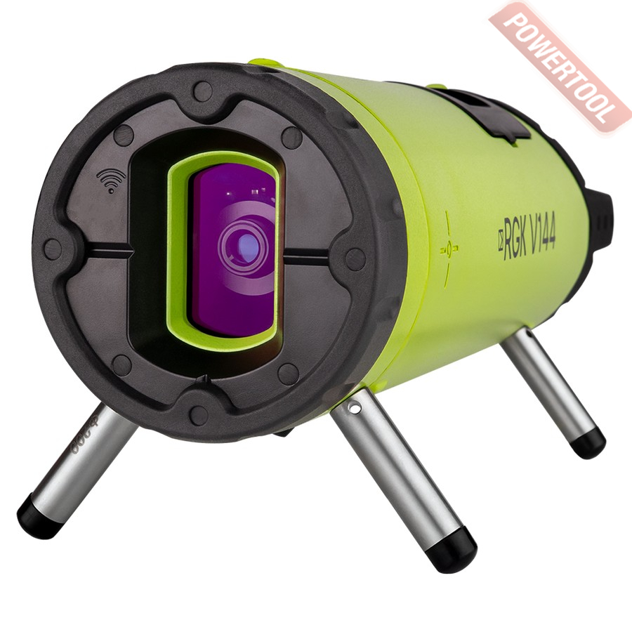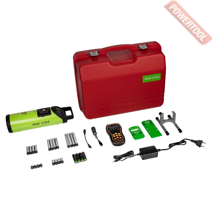 Трубный лазер RGK V144 излучает четкую зеленую лазерную точку, видимую на расстоянии до 600 м при использовании приемника. Доступны режимы автоматического центрирования, сканирования влево/вправо (±4 градуса), а также функция автотрекинга — лазер самостоятельно находит центр приемника и фиксирует луч.