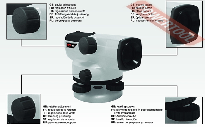 - После того, как прибор приблизительно выставлен с помощью круглого уровня, механизм автоматической компенсации устанавливает линию визирования точно в горизонт.