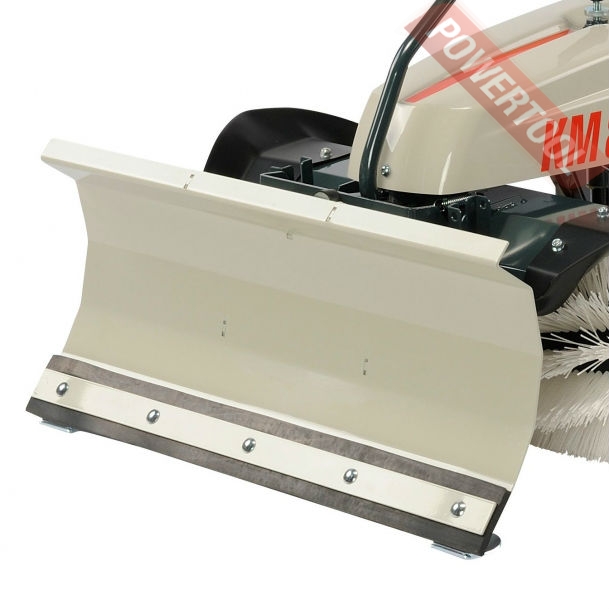 Нож отвал для подметальных машин HVR 120, HVR plus 120, рабочая ширина 120 см, крепится на свипер без специальных инструментов перед щеткой и сдвигает снег, регулировка по высоте в 4-х положениях, резиновая накладка для защиты поверхности, пружинно-откидной механизм для защиты от наезда на препятствие, листовая сталь с антикоррозийным покрытием.