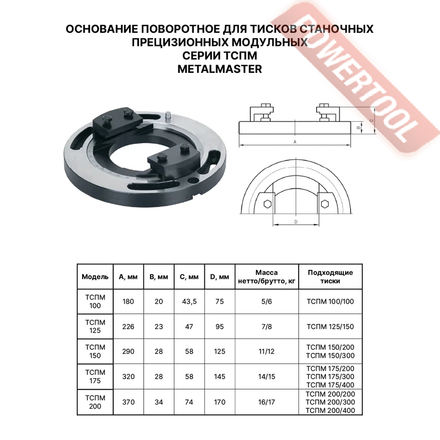 - 1. Основание поворотное для тисков METAL MASTER ТCПМ 100.