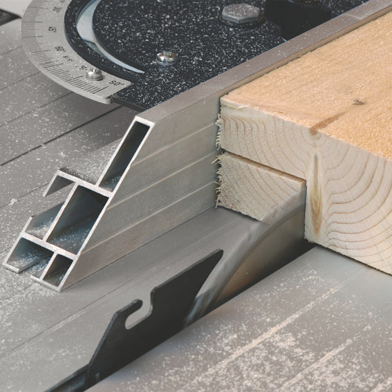 • Рабочий стол пилы оснащен универсальным упором. Универсальный упор для торцевых и продольных резов используется со всех сторон стола.