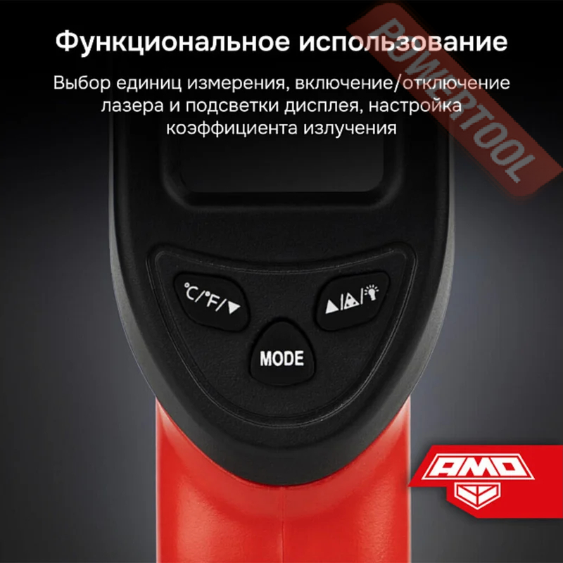 Нажатие курка на пистолетной рукоятке AMO T630 активирует режим непрерывных измерений SCAN. После его отпускания срабатывает функция HOLD. Она фиксирует последний цифровой показатель на дисплее для упрощения считывания результатов измерений.