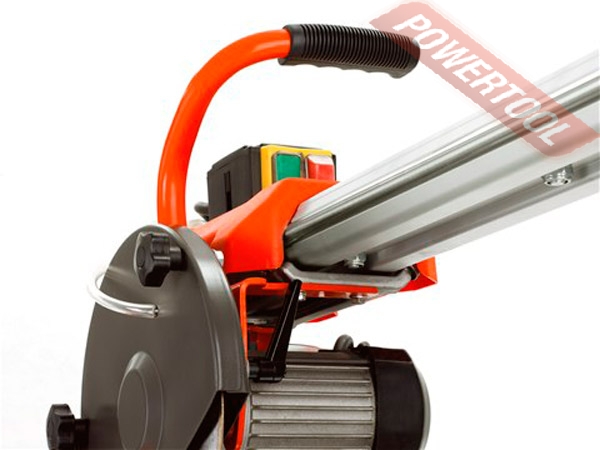 • Режущая головка. Качающаяся режущая головка на шарнире с газоамортизатором, фиксируется во всех положениях, обеспечивая плиткорезу возможность врезки или даже врезания крупных блоков