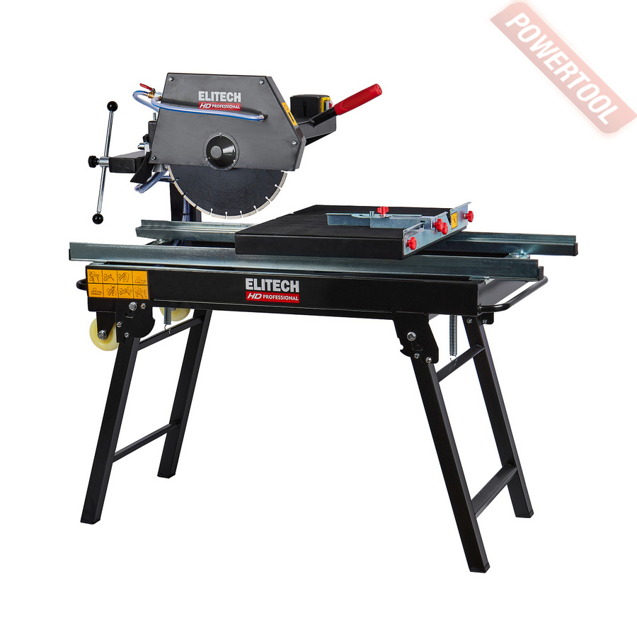 Плиткорез электрический с нижним расположением диска, 600 Вт, 220 В, 2950 об/мин, диск 180х22,2 мм, длина реза неограничена, мах глубина реза при 90/45 градусах 33/27 мм, угол реза 90/45 градусов, размер рабочего стола 333х360 мм, водяное охлаждение из ванны, вес 8,5 кг, паралельный упор, диск алмазный для керамической плитки.