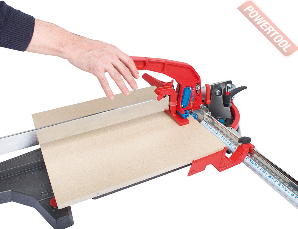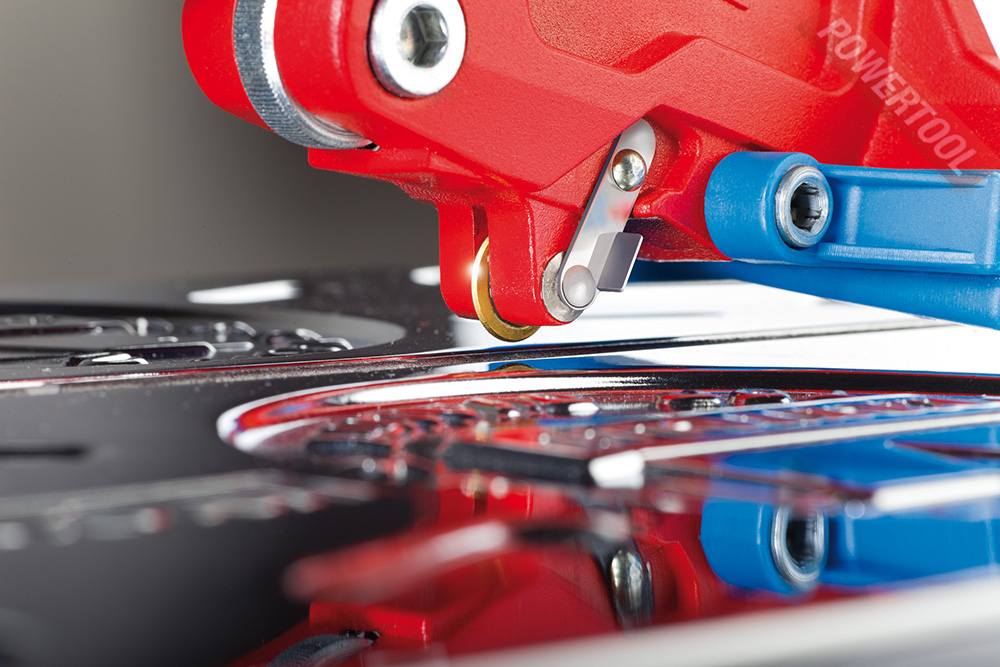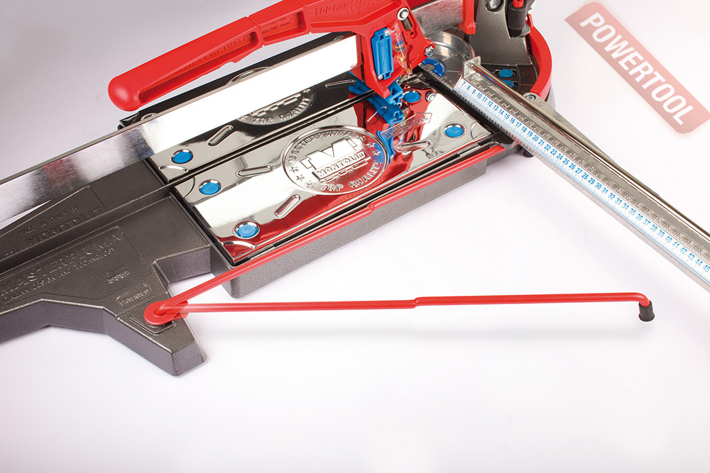 • Удлинённая ручка облегчает разлом и используется для переноса плиткореза. Точная и чрезвычайно мощная эргономичная ручка толкателя признана самым эффективным рычагом на рынке плиткорезов.