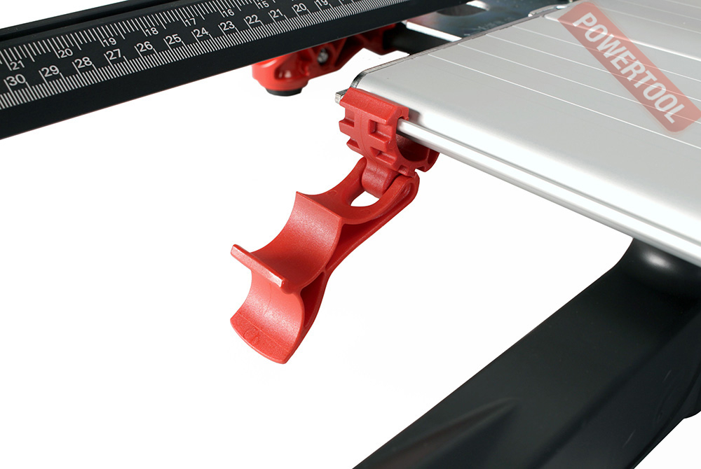 - Поворотная линейка со съёмными пластиковыми заглушками и системой блокировки гарантирует точность резки и облегчает резку под углом. Патентованный оковой упор длиной 30 см с большой опорной площадью облегчает повторяющуюся резку керамики большого формата.