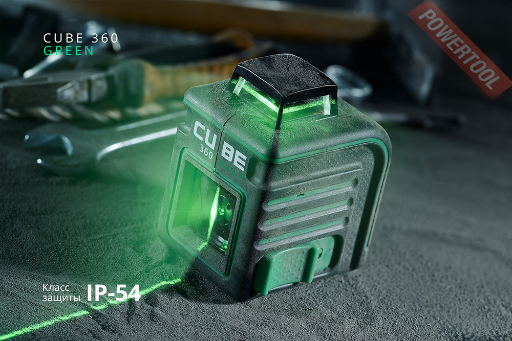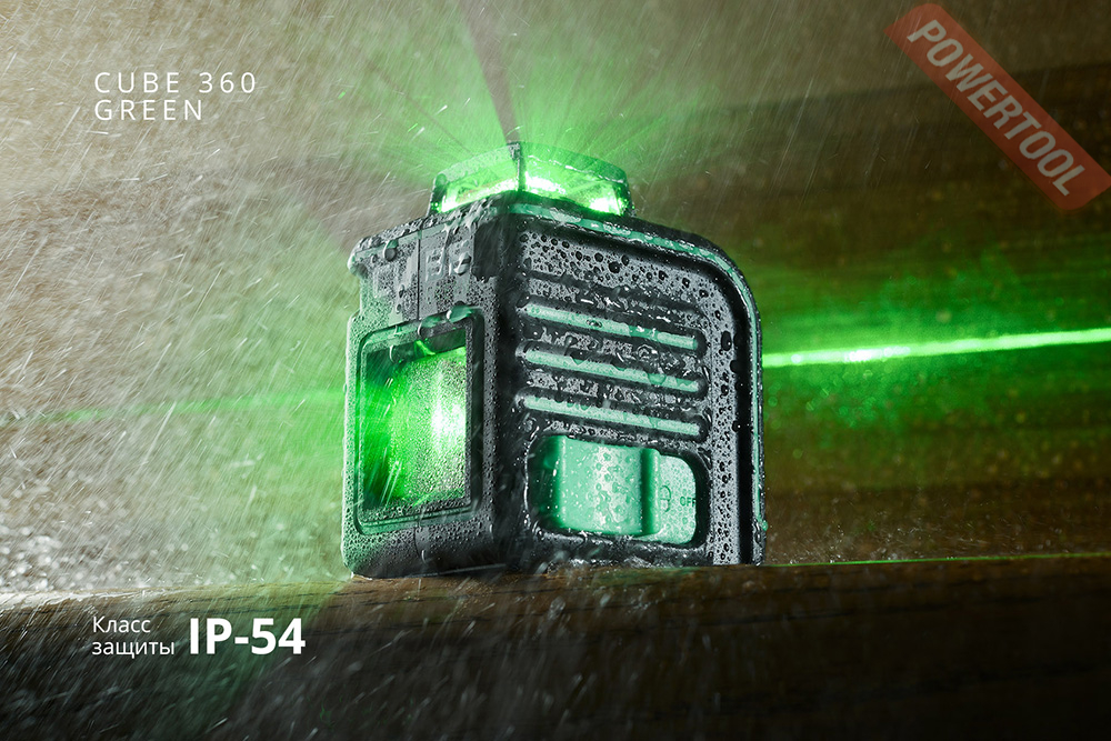 - Яркий зеленый луч. Главное отличие ADA CUBE 360 Green от других лазерных уровней это использование зеленого лазерного излучателя. Зеленый луч отлично подходит для разметки при ярком свете. Зеленую лазерную линию очень хорошо видно по сравнению с красной при равных условиях освещенности.